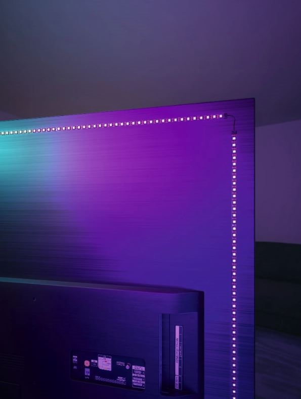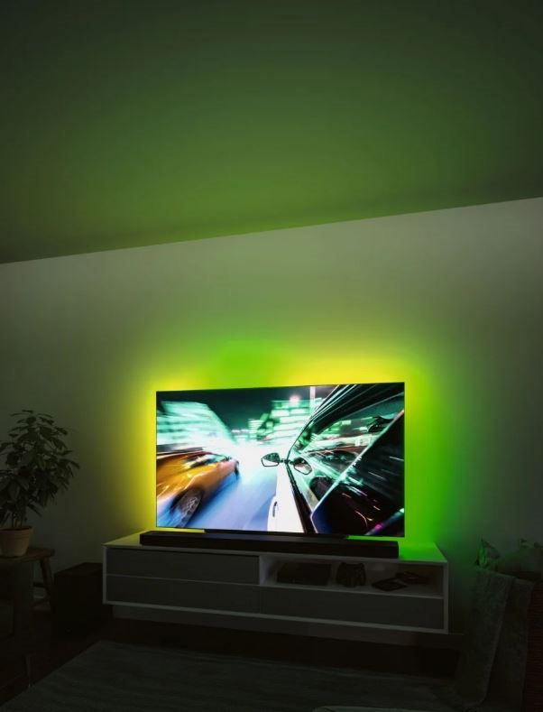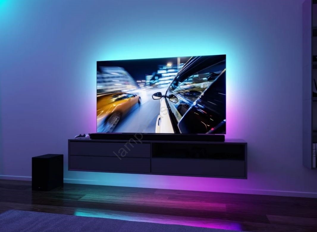 • Nodrošina apgaismojumu no trim pusēm aiz televizora.