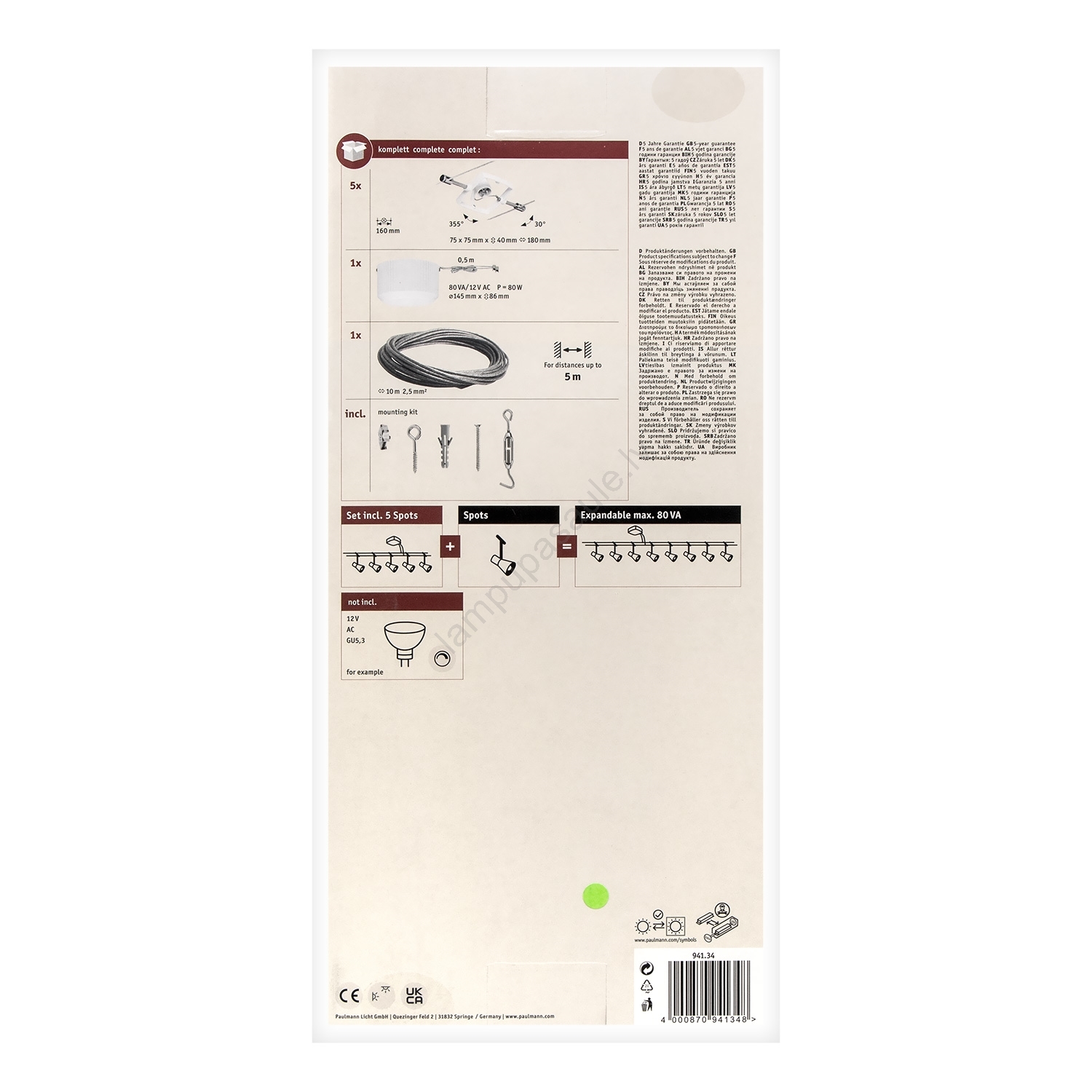 • Paulmann 94133 - KOMPLEKTS 5xGU5,3/10W Starmetis auklu sistēmai MAC 230V matēts hroms