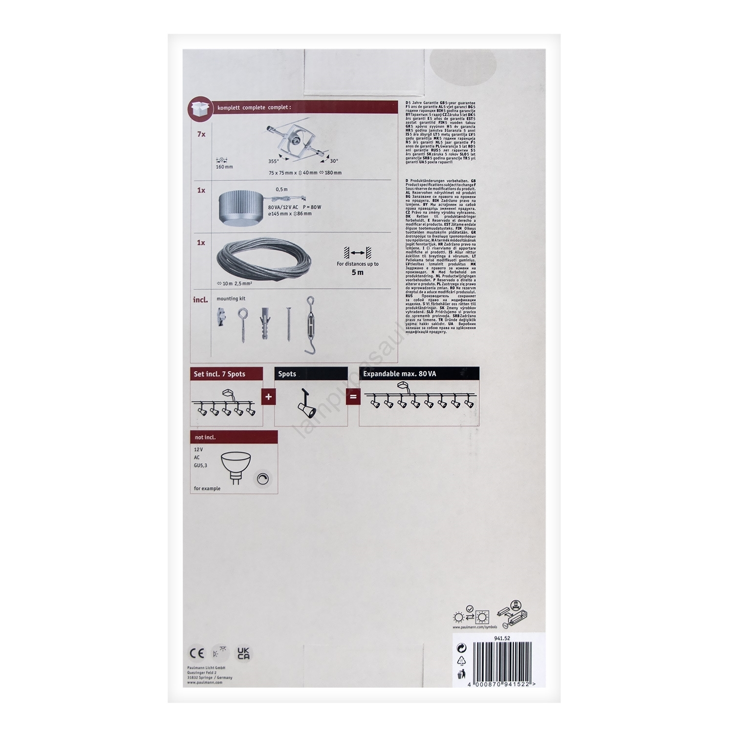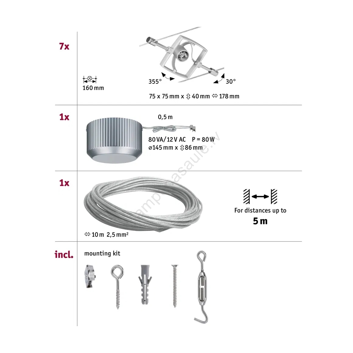 Paulmann 94152 - Komplekts 7xGU5,3/10W Pilna MAC trošu sistēma 230V matēts hroms