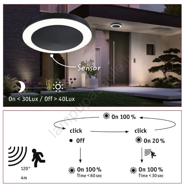 Paulmann 94526 - LED/14W IP44 Āra griestu lampa ar sensoru CIRCULA 230V | Lampupasaule