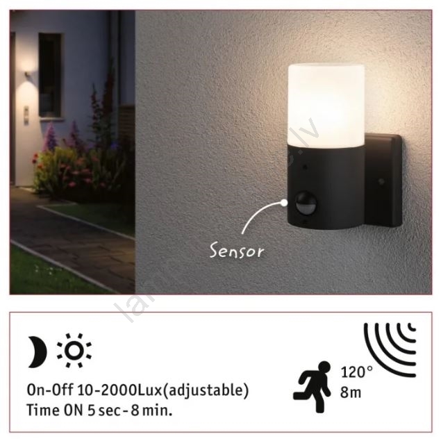 Paulmann 94648 - 1xE27/15W IP44 Āra sienas lampa ar sensoru TUBS 230V | Lampupasaule