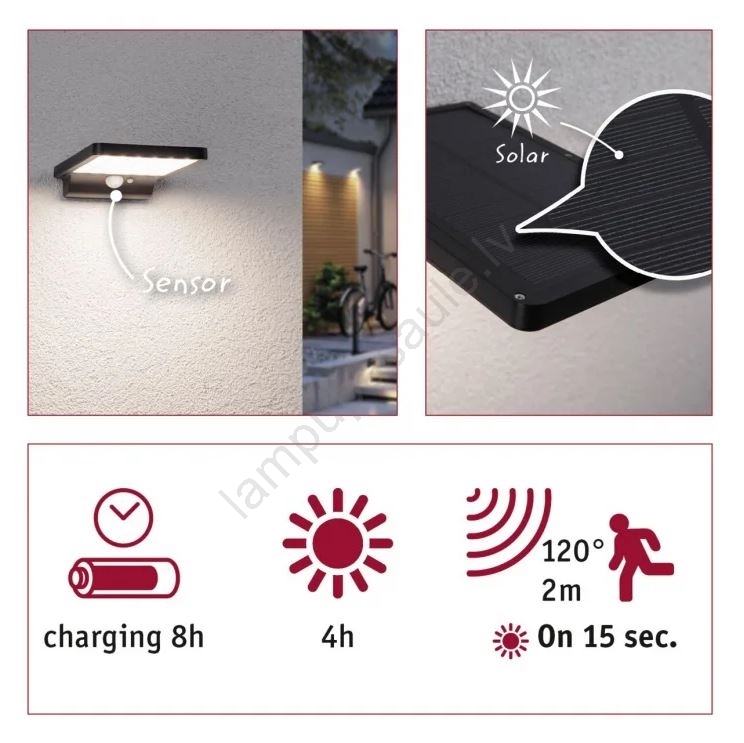 Paulmann 95393-LED/4W IP44 Aptumšojama saules enerģijas lampa ar sensoru SOLVEIG 3,7V | Lampupasaule