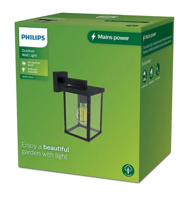 Philips - Āra sienas lampa BELLINI 1xE27/25W/230V IP44 izceļas ar jauku un funkcionālu dizainu.  Spuldze ar E27 cokolu irpiemērota lampai. Šeit, varat iegādāties citas spuldzes par izdevīgām cenām. Tā būs interesants jūsu mājas papildinājums.