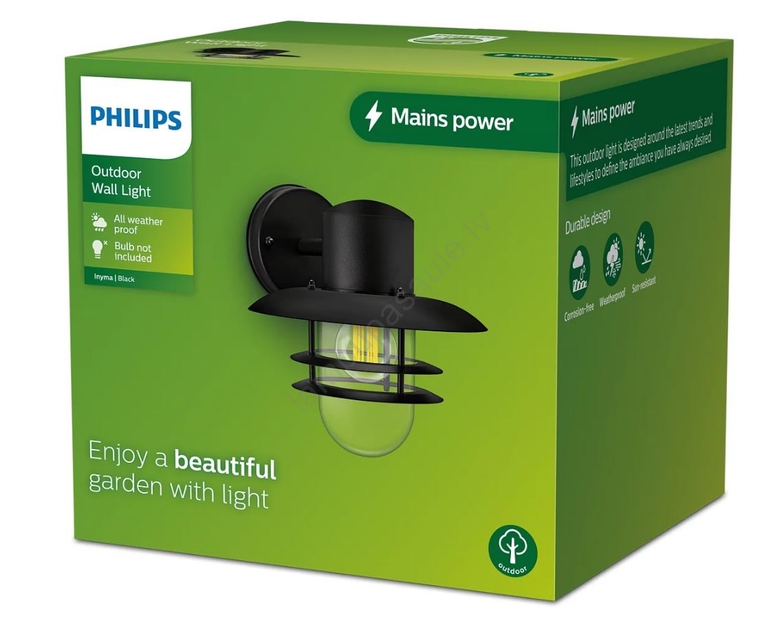 Philips - Āra sienas lampa INYMA 1xE27/25W/230V IP44 izceļas ar jauku un funkcionālu dizainu.  Spuldze ar E27 cokolu irpiemērota lampai. Šeit, varat iegādāties citas spuldzes par izdevīgām cenām. Tā būs interesants jūsu mājas papildinājums.