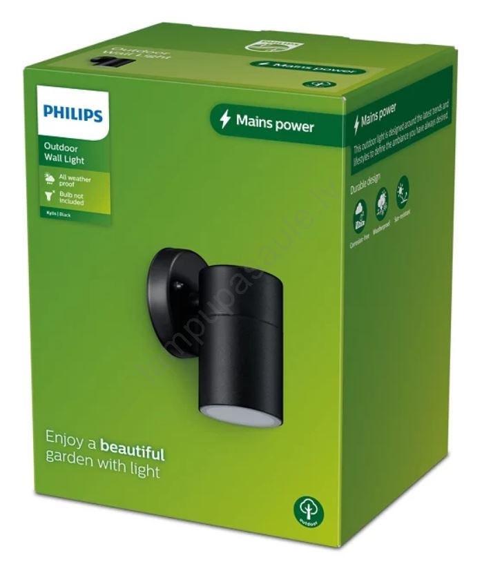 Philips - Āra sienas lampa KYLIS 1xGU10/25W/230V IP44 izceļas ar jauku un funkcionālu dizainu.  Spuldze ar GU10 cokolu irpiemērota lampai. Šeit, varat iegādāties citas spuldzes par izdevīgām cenām. Tā būs interesants jūsu mājas papildinājums.