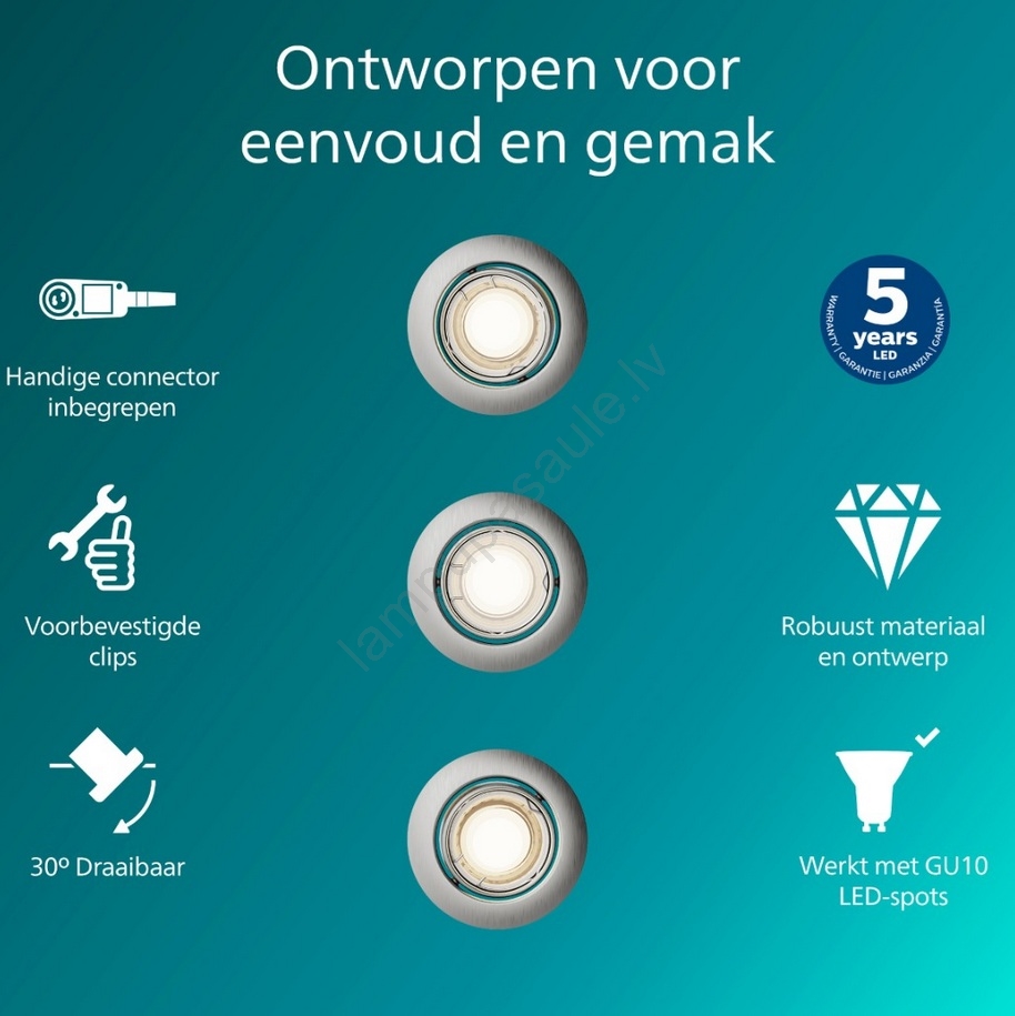 Philips - komplekts 3x iebūvējami griestu gaismekļi PERIDOT 1xGU10/7W/230V sudraba izceļas ar jauku un funkcionālu dizainu.  Spuldze ar GU10 cokolu irpiemērota lampai. Šeit, varat iegādāties citas spuldzes par izdevīgām cenām. Tā būs interesants jūsu mājas papildinājums.