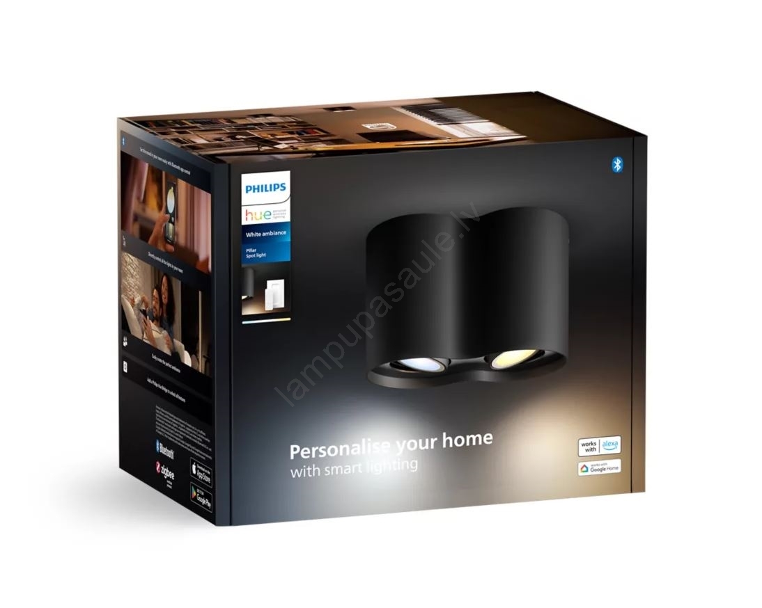 Philips - LED Aptumšojams starmetis Hue PILLAR 2xGU10/4,2W/230V + TP melna | Lampupasaule