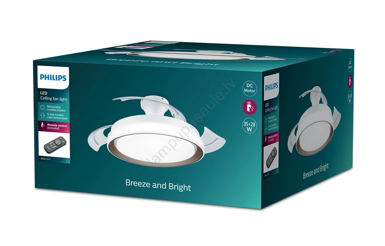 • Philips-LED Griestu lampa ar ventilatoru LED/35W/230V 5500/4000/2700K + tālvadības pults zelta