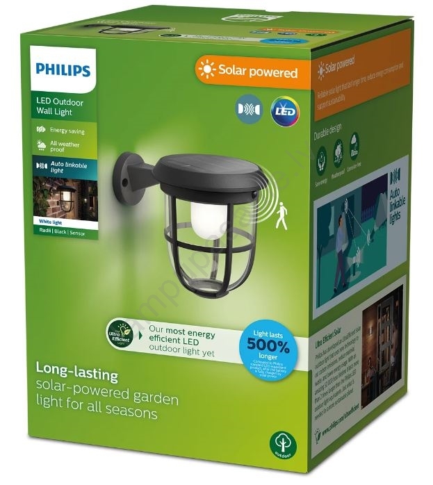 Philips-LED Saules enerģijas sienas lampa ar sensoru RADII LED/1,3W/3,7V 3000K IP44 | Lampupasaule