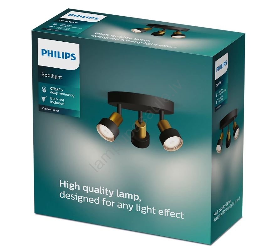 Philips - Starmetis CONDUIT 3xGU10/5W/230V melna/misiņš | Lampupasaule