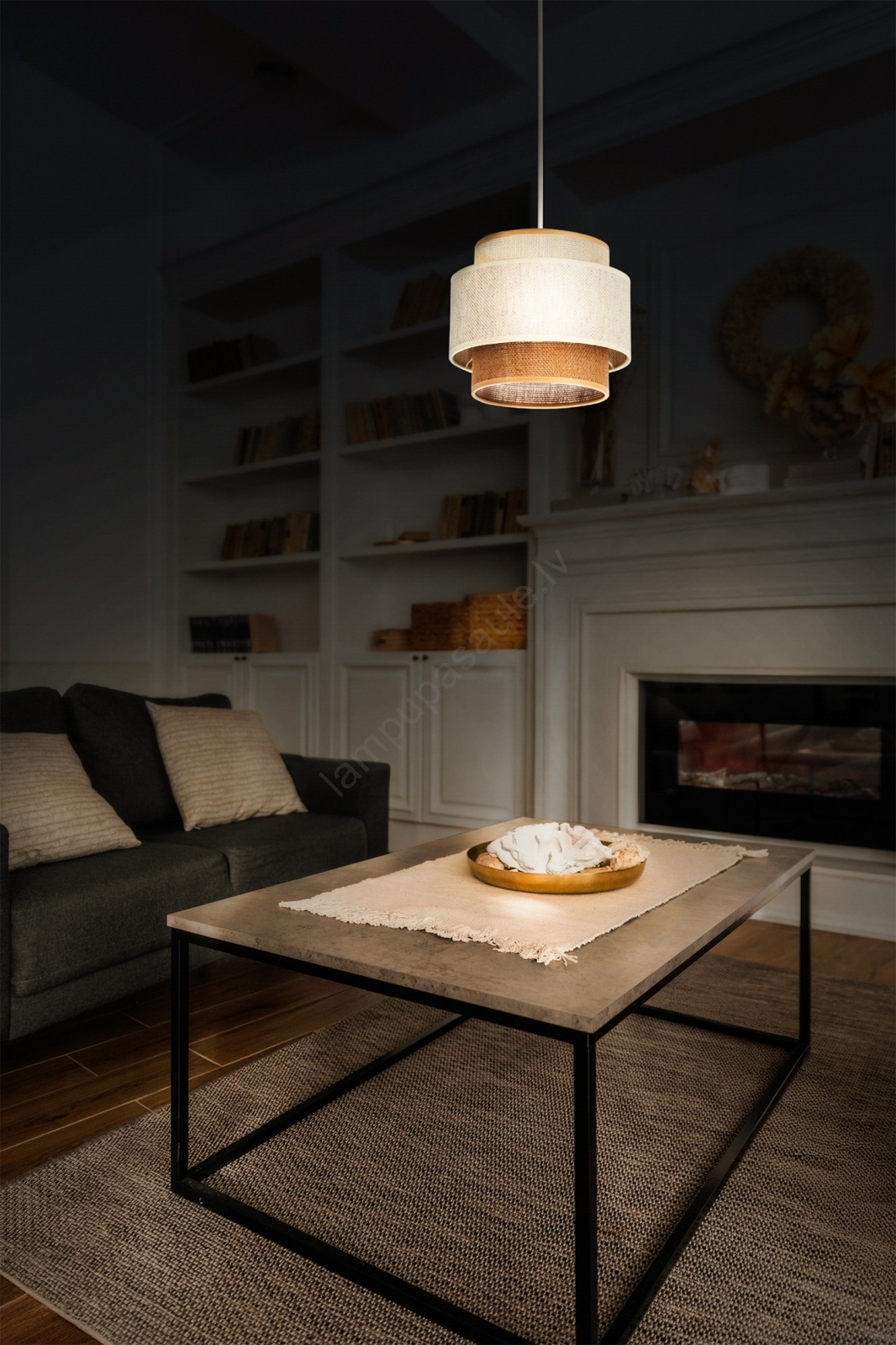 Piekaramā lampa BOHO ar vadu 1xE27/60W/230V Ø20 cm balta/džuta | Lampupasaule
