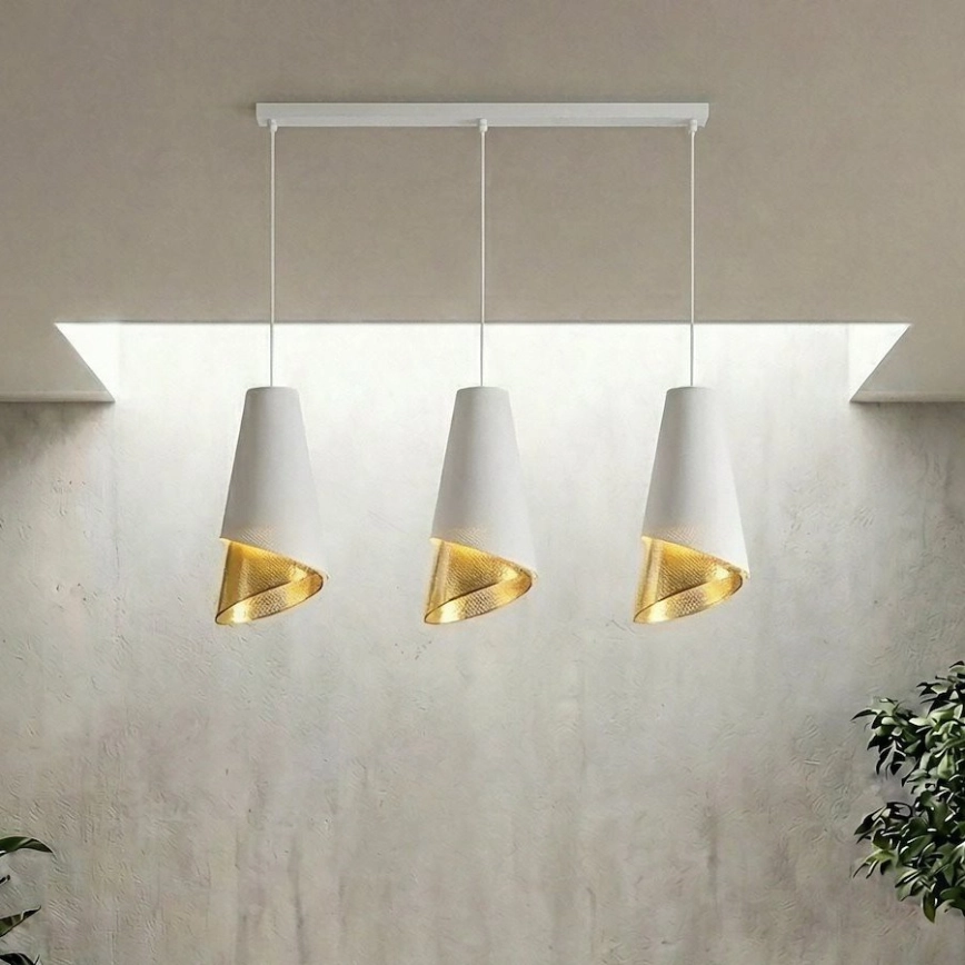 Piekaramā MODA lustra uz vada 3xE27/15W/230V balta/zelta izceļas ar jauku un funkcionālu dizainu.  Spuldze ar E27 cokolu irpiemērota lampai. Šeit, varat iegādāties citas spuldzes par izdevīgām cenām. Tā būs interesants jūsu mājas papildinājums.