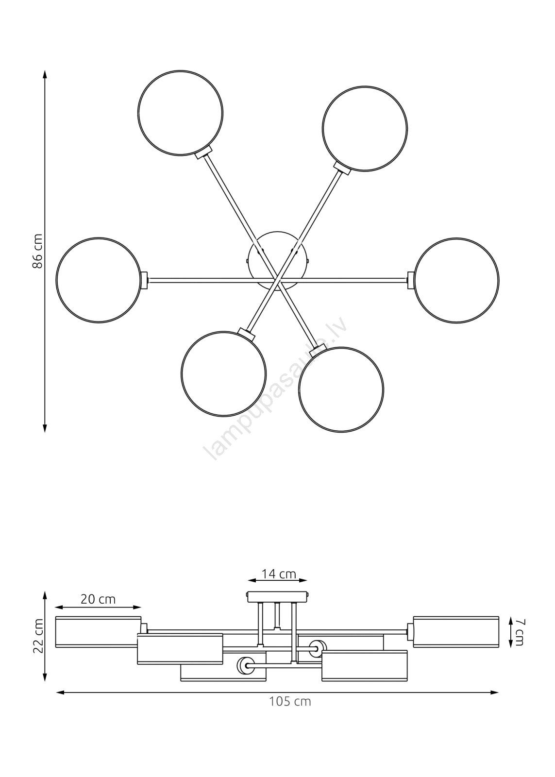 Piestiprināma griestu lampa MAGA 6xE14/10W/230V pelēka izceļas ar jauku un funkcionālu dizainu.  Spuldze ar E14 cokolu irpiemērota lampai. Šeit, varat iegādāties citas spuldzes par izdevīgām cenām. Tā būs interesants jūsu mājas papildinājums.