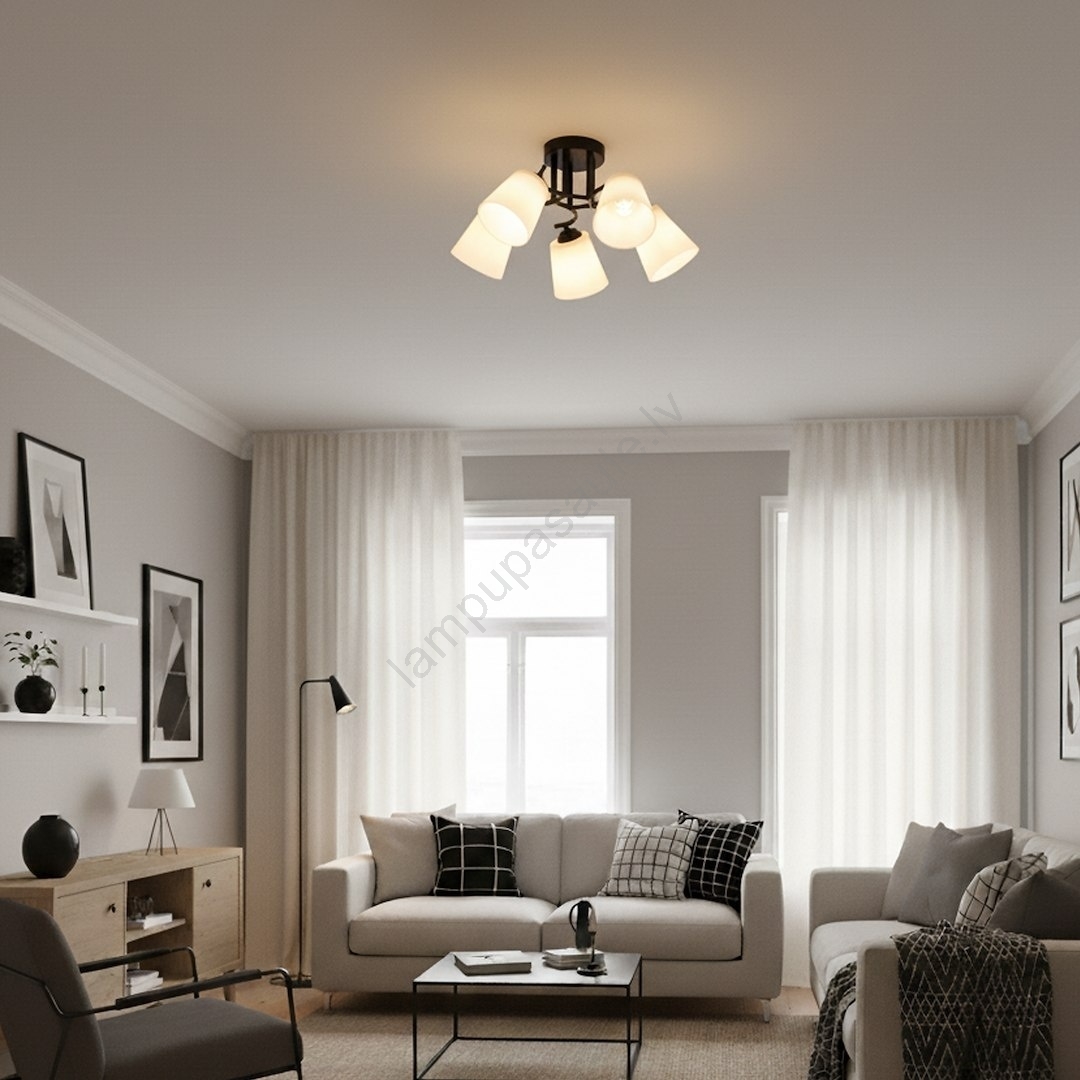 Piestiprināms griestu lustrs PAFOS 5xE27/15W/230V melns izceļas ar jauku un funkcionālu dizainu.  Spuldze ar E27 cokolu irpiemērota lampai. Šeit, varat iegādāties citas spuldzes par izdevīgām cenām. Tā būs interesants jūsu mājas papildinājums.