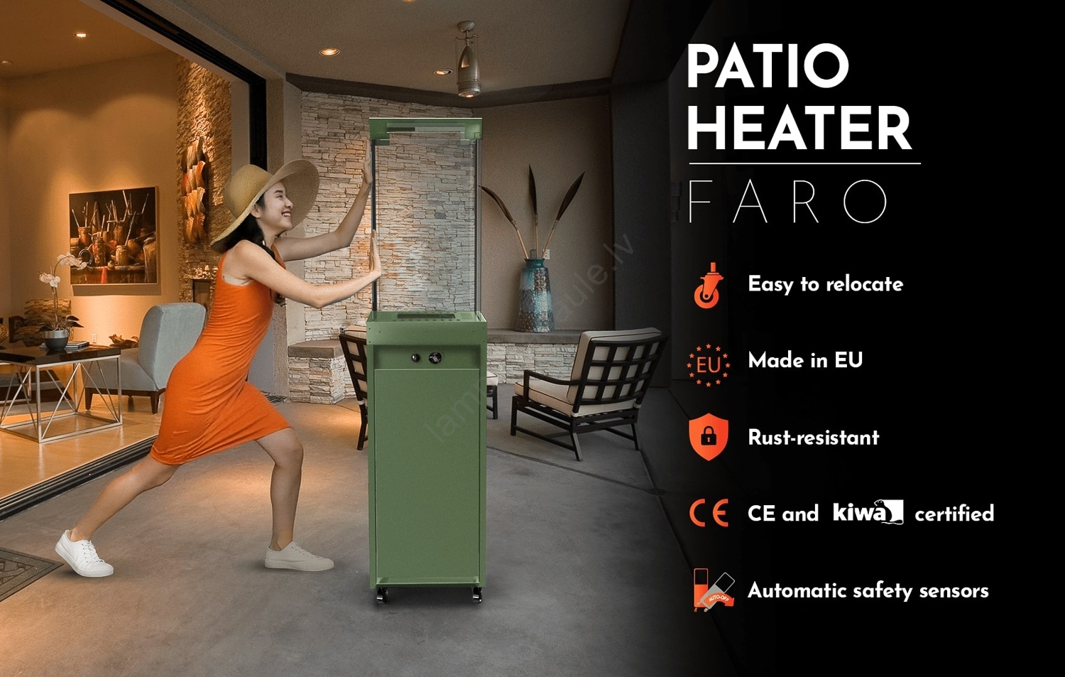 Planika Faro GAS - Āra gāzes kamīns 142x36 cm 8kW zaļa + aizsargapvalks | Lampupasaule
