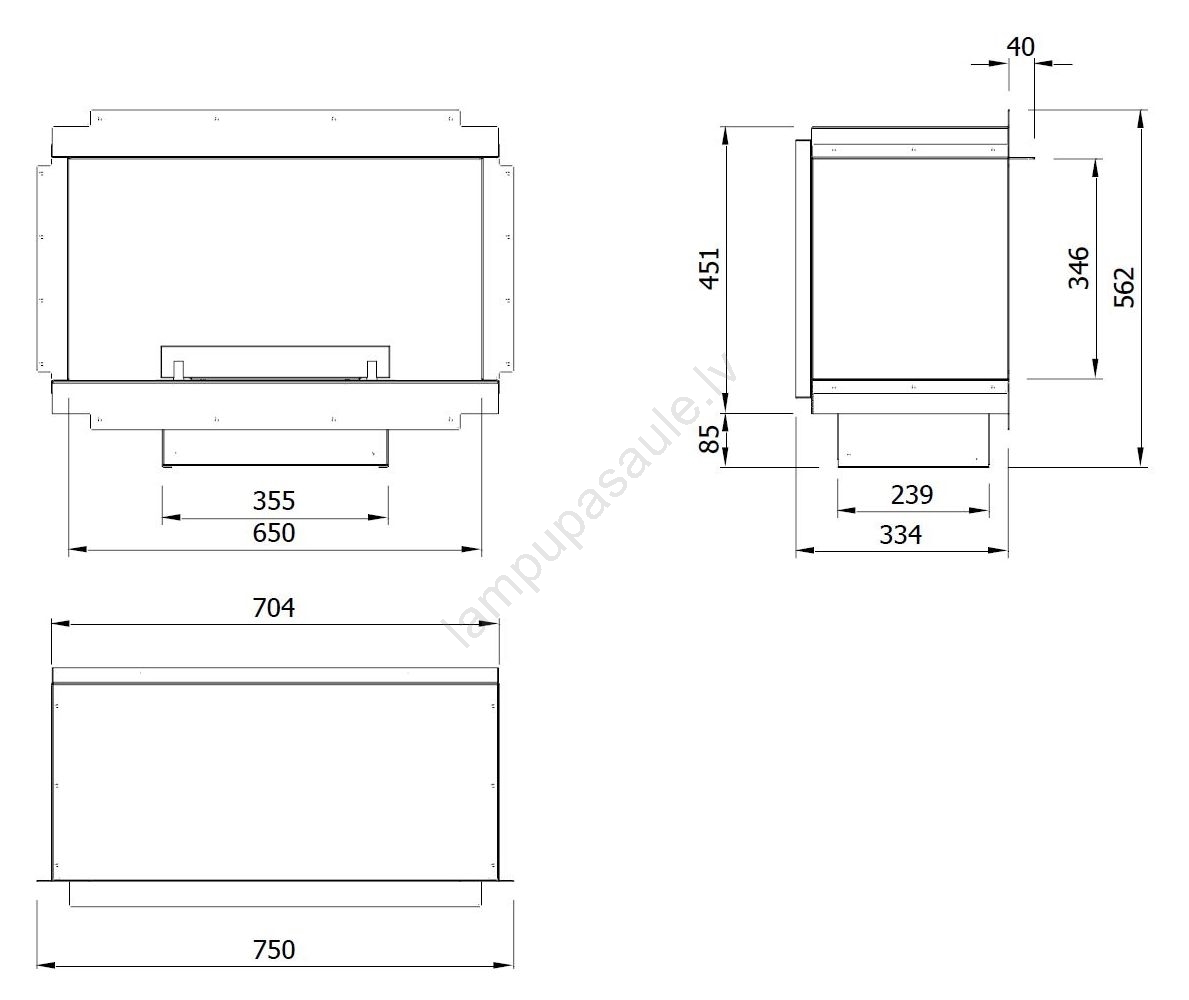 • Kamīna izmēri: 56,2 x 75 x 33,4 cm.