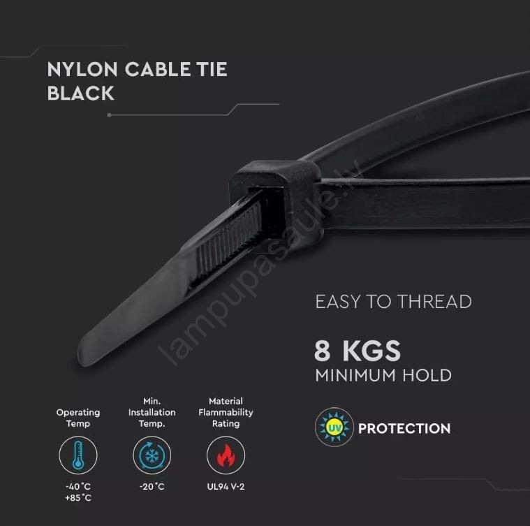 Plastmasas locīšanas josla2,5x150mm 100gab melnas | Lampupasaule