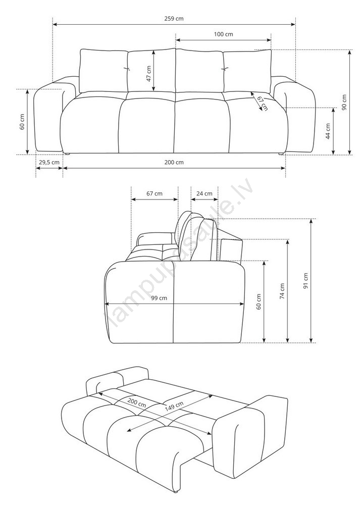 Atpūtas vietas, Dīvāni un atpūtas dīvāni, Mēbeles, Nedēļas atlaides, Saliekamie dīvāni, Trīsvietīgi