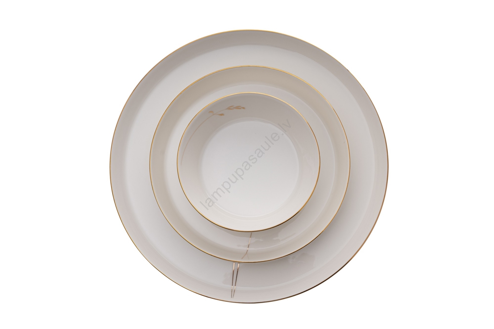 Porcelāna galda servīze, 27 daļas — balta/zeltaina | Lampupasaule