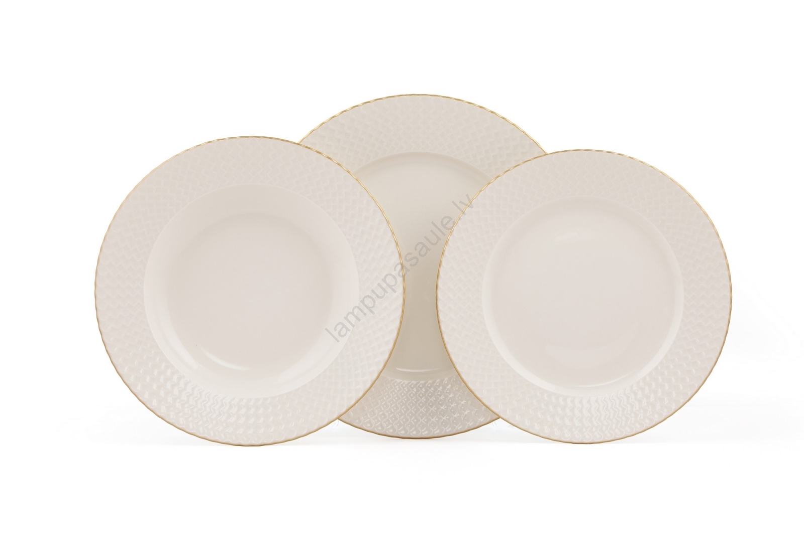 Porcelāna servīze 18 daļas — balta/zelta | Lampupasaule