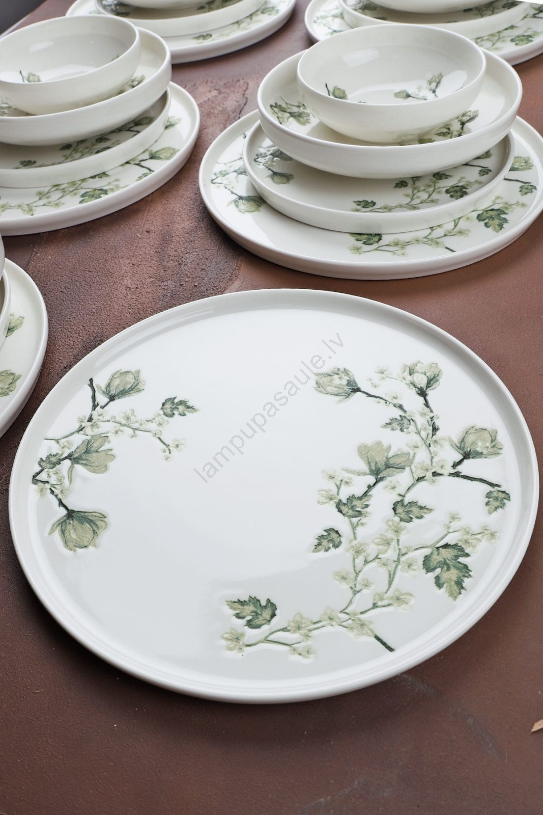 Porcelāna servīze, 24 daļas, balta/zaļa