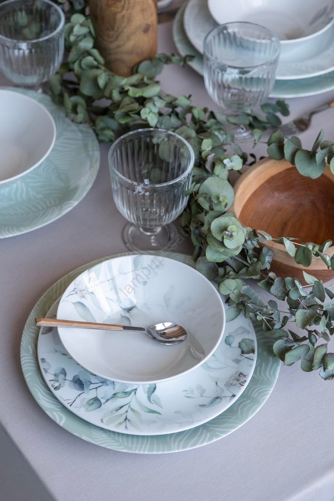Porcelāna servīze 24 daļas, balta/zaļa | Lampupasaule