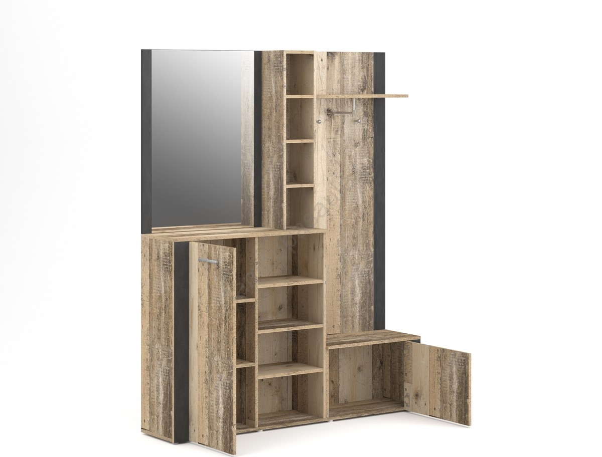 • Atvērtie plaukti, āķi, mēteļu stienis un liels spogulis piedāvā tieši to, kas jums nepieciešams.