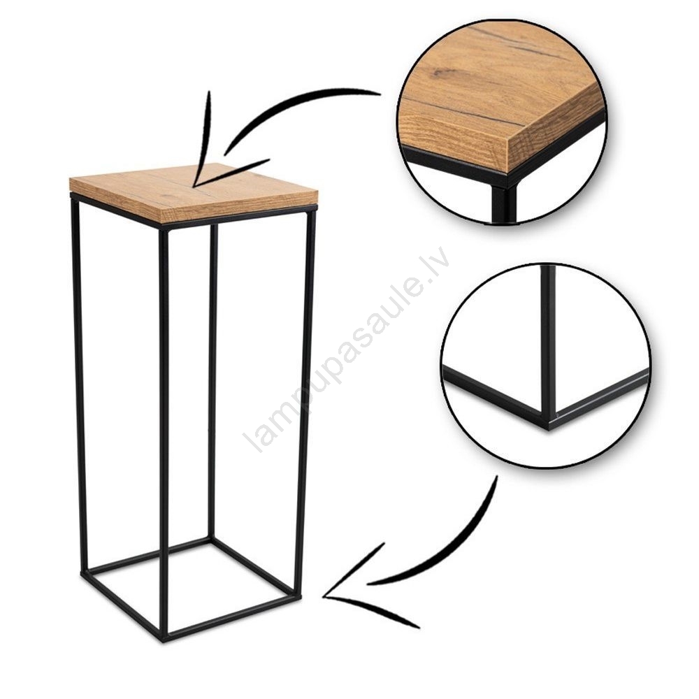 • Augšējā virsma izgatavota no izturīgas MDF plāksnes Lancelot ozola krāsā, kājas no metāla.