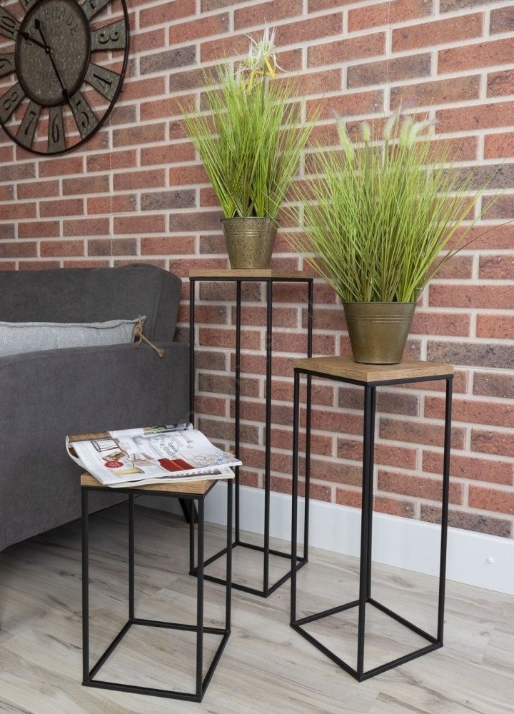 Puķu statīvs BASICLOFT 80x24 melns/brūns | Lampupasaule