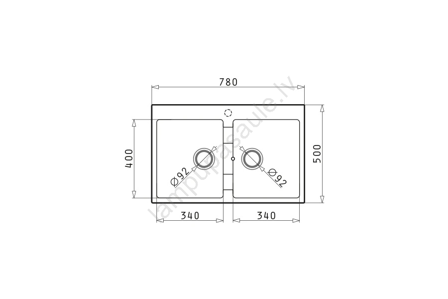 • Ar divām pilnībā izurbtām atverēm un divām iepriekš urbētām atverēm.