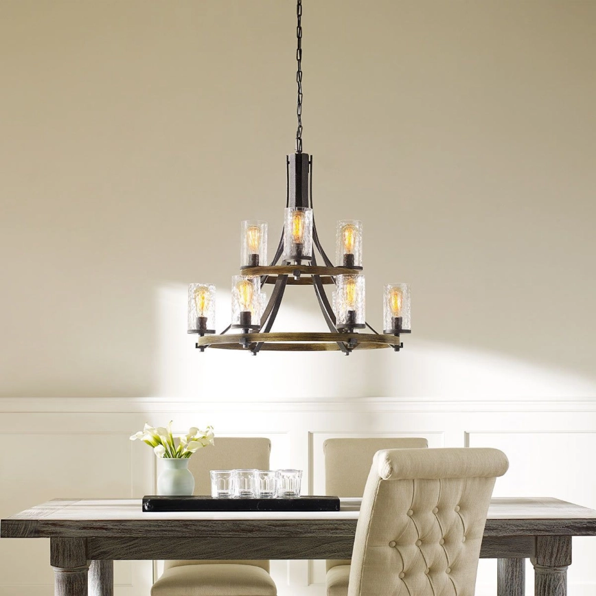 Quintiesse - Lustra ar ķēdi ANGELO 9xE27/60W/230V, ozola dekors