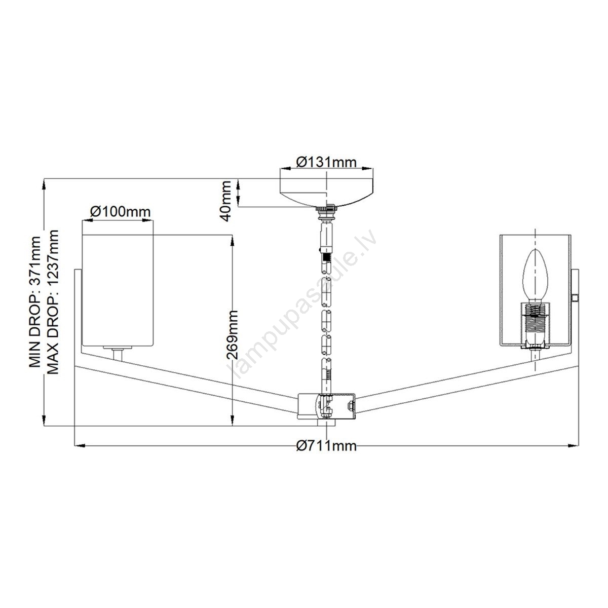 • Quintiesse - lustra uz stieņa NYE, 6x E14 (maks. 40 W), 230 V, diametrs 71,1 cm, matēts hroms
