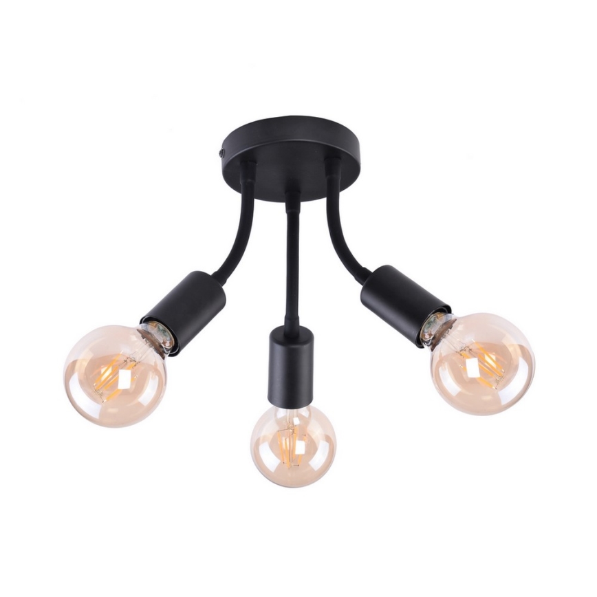 Trīskāršs griestu gaismeklis Almus rūpnieciskā stilā, izgatavots no metāla, ar vienkāršu, bet pievilcīgu dizainu, būs stilīgs papildinājums jūsu mājām. Melnais gaismeklis papildināts ar mazu, melnu dekoratīvu pamatni. Pateicoties trim prožektoriem, kas vērsti dažādos virzienos, Almus nodrošina vienmērīgu apgaismojumu telpā. Griestu gaismekli var izmantot ar trim gaismas avotiem līdz 60 W jaudā, ar E27 pamatni. Atkarībā no jūsu gaumes to var izmantot ar siltas vai dabīgas baltas gaismas avotiem. Almus diametrs ir 350 mm, un attālums no griestiem ir 165 mm. Mēs galvenokārt iesakām šo modeli izmantot jūsu viesistabā. Gaismeklis tiek piegādāts bez gaismas avotiem.