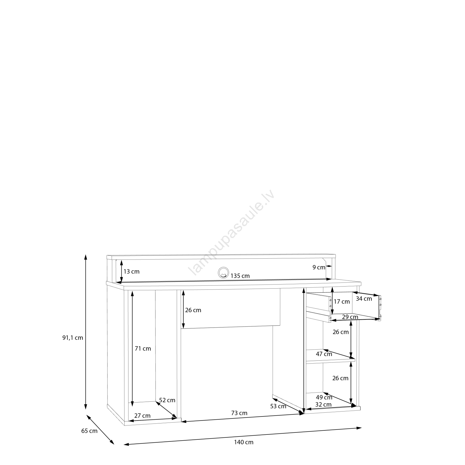 • Nodrošina pietiekami daudz vietas PC stacijas, klaviatūras, peles un vairāku monitoru ergonomiskai un pārdomātai izvietnei.