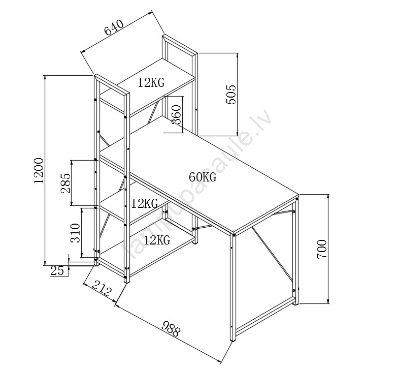 • Praktiska galda forma ļauj optimāli izmantot vietu jūsu darba telpā vai mājas birojā.