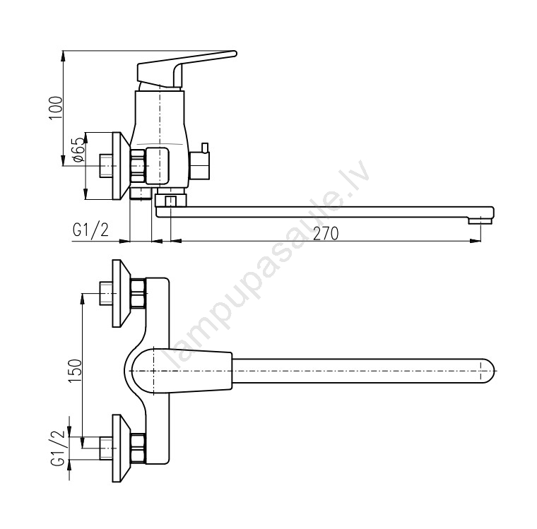 • Vannas/izlietnes stacionārais jaucējkrāns ar plakanu, grozāmu iztecēju (garums 30 cm).
