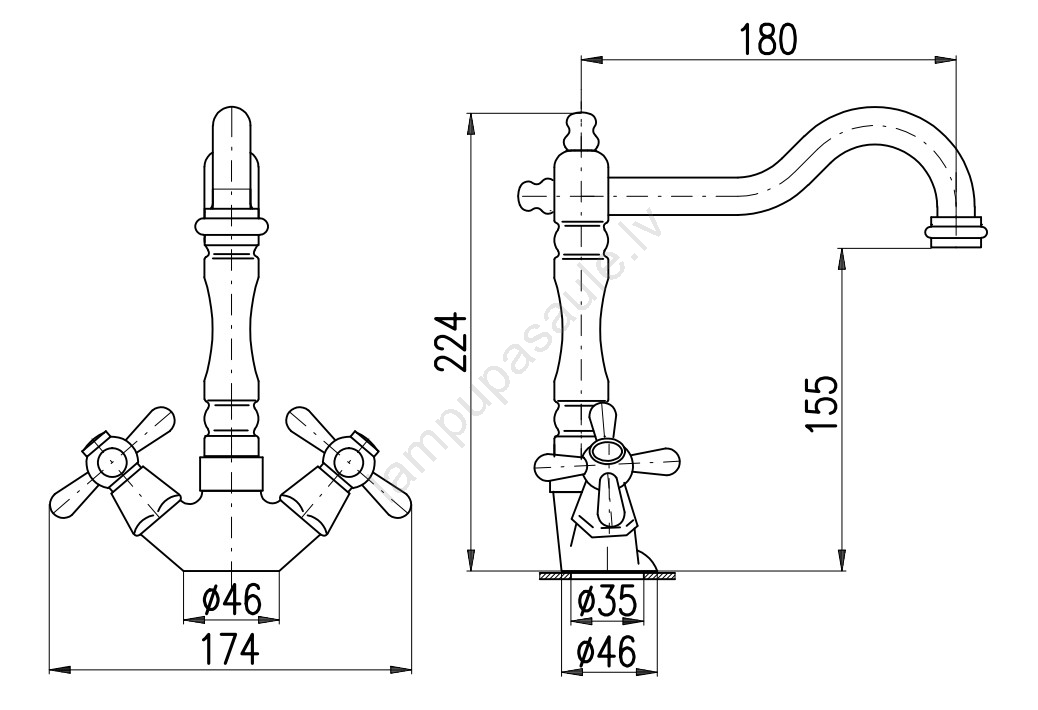 • Izlietnes uzstādāmais jaucējkrāns ar grozāmu uzgali un CLICK-CLACK 5/4".
