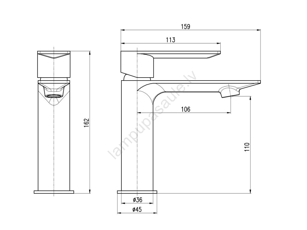 • Iebūvēts perlators piešķir izlietnes jaucējkrānam eleganci.