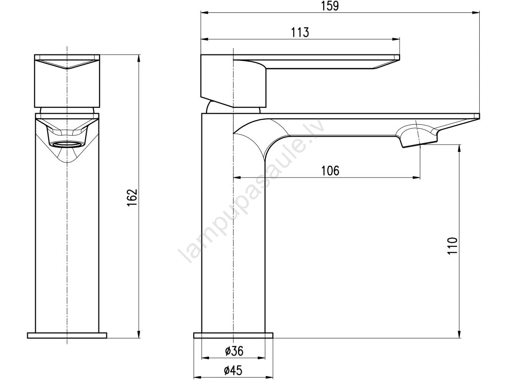 • Virsmas uzstādāms izlietnes jaucējkrāns bez notekas.