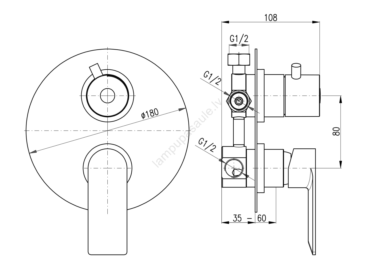 • 3-virzienu iebūvējamais jaucējkrāns ar pārslēdzēju.