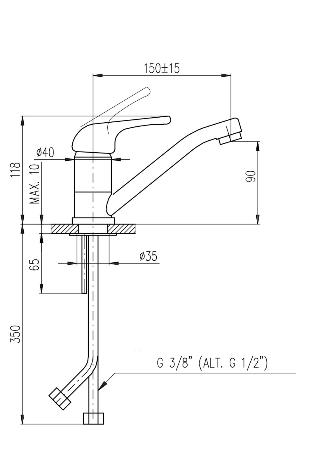 • Stāvošs izlietnes jaucējkrāns bez notekas aizbāžņa.