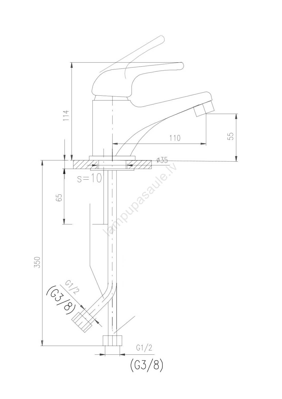 • Virsmas uzstādāms izlietnes jaucējkrāns bez noteces.