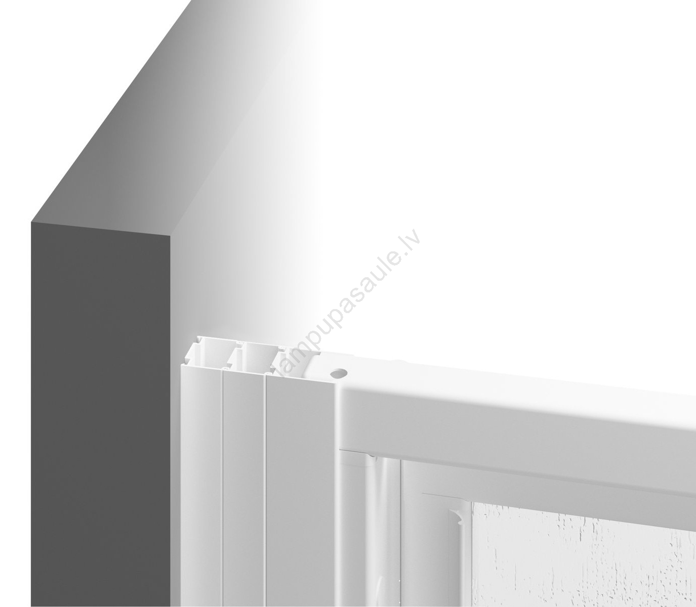 • Trīsdaļīgas dušas durvis ar necaurspīdīgu plastmasas pildījumu.