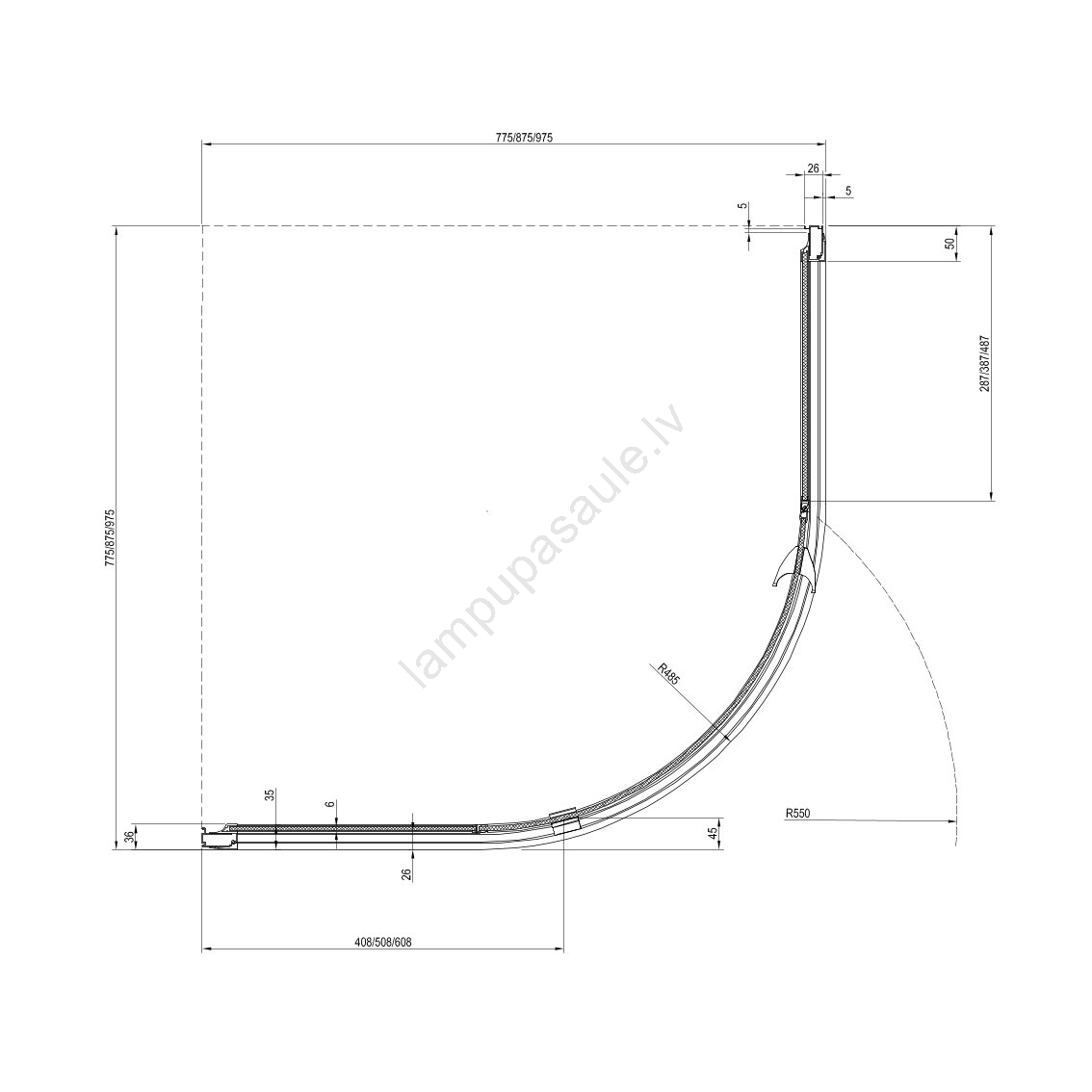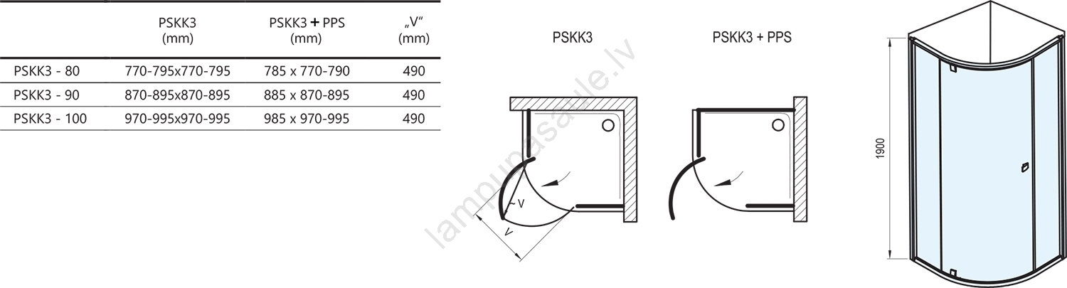 • Stūra augstums ir 190 cm, kas nodrošina komfortablu telpu dušai.