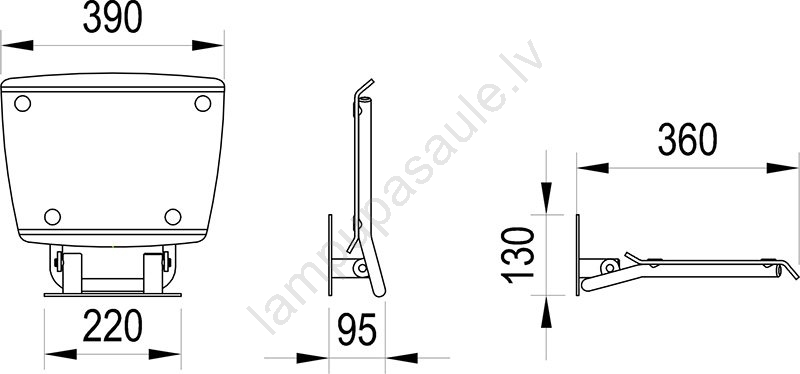 • Sēdekļa izmēri ir 36 x 36 cm, maksimālā slodze līdz 150 kg, ievērojot montāžas norādījumus.