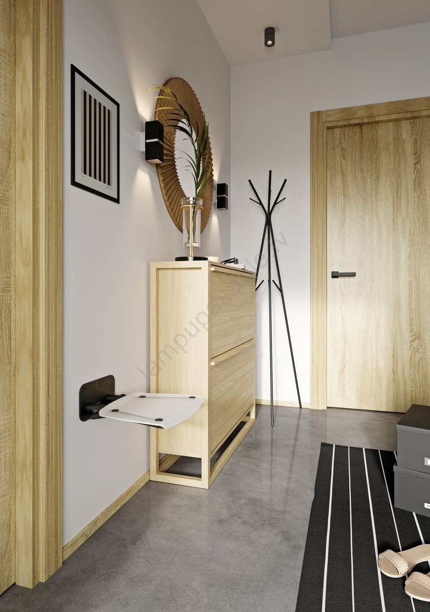 • Sēdekli var vienkārši nolocīt pie sienas, tādējādi ietaupot vietu un saglabājot brīvu kustību dušā.