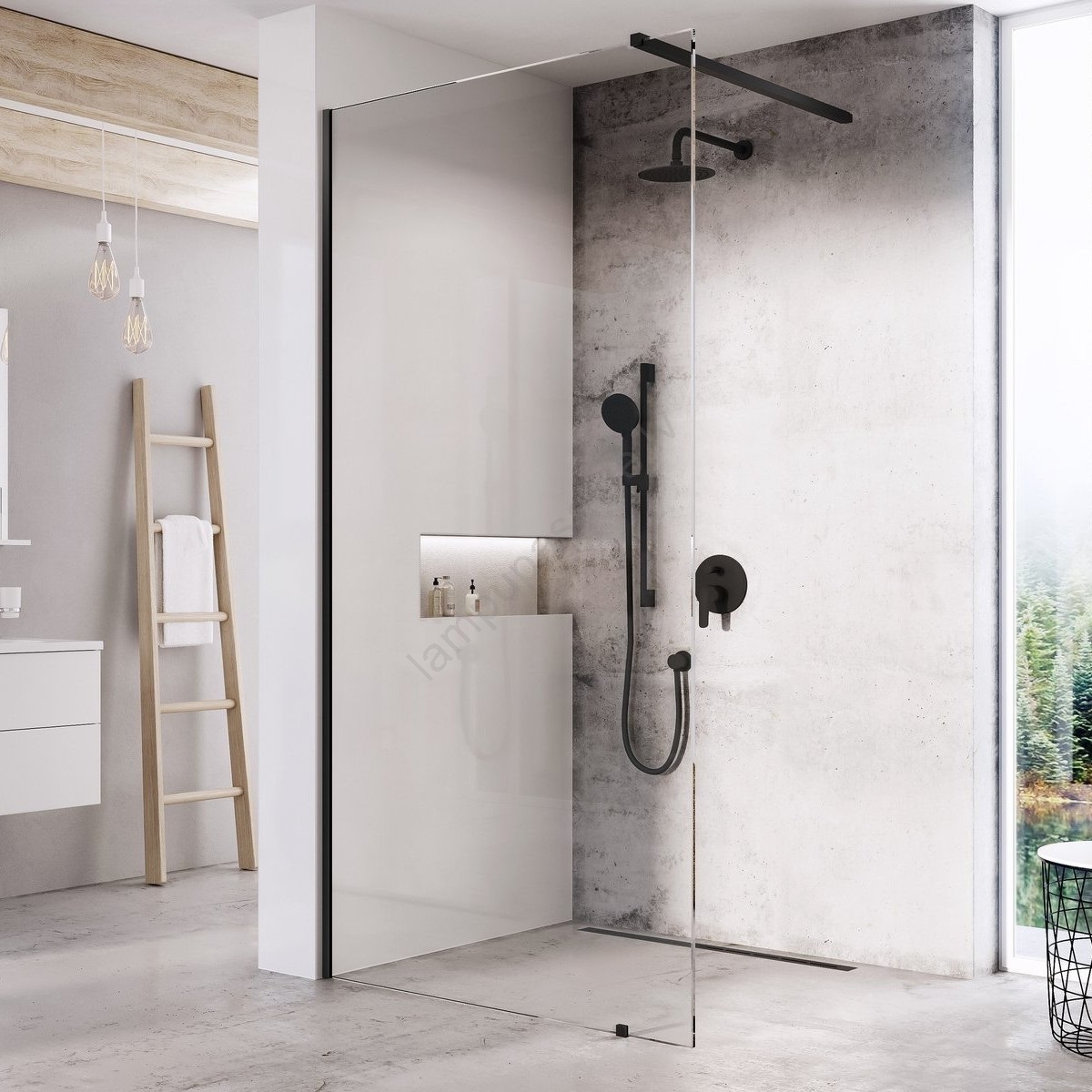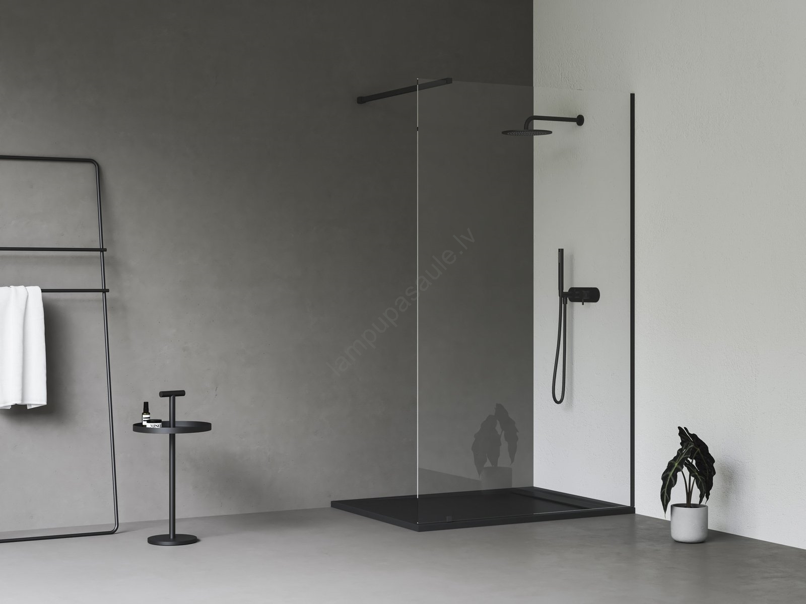 • Dušas stūris Walk-In Wall melnā krāsā piedāvā mūsdienīgu un atklātu ieeju, kuru pēc vajadzības var pielāgot līdz 120 cm platumam.