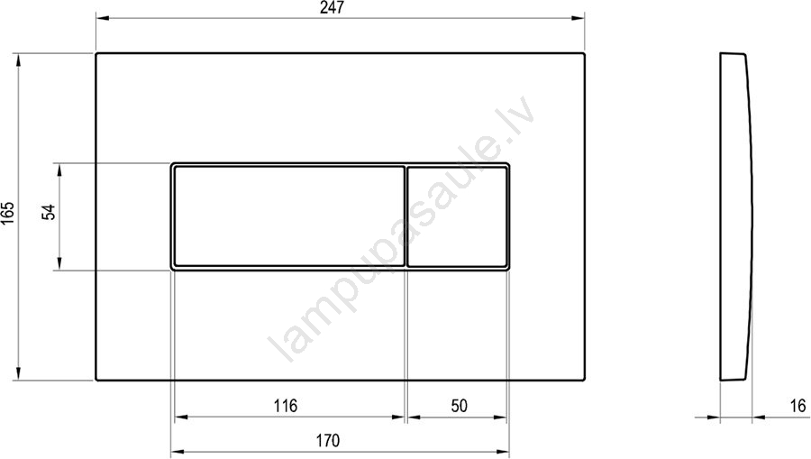 • Mehānisms ir integrēts sienā, tāpēc pogas virs flīzēm izvirzās vien minimāli.