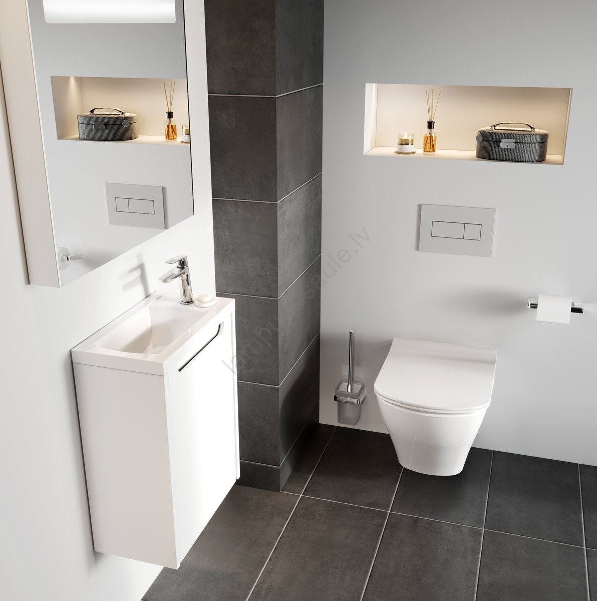 • Lai nodrošinātu pilnu funkcionalitāti, iesakām iegādāties uzstādīšanas skalošanas moduli, vadības pogu un WC vāku Classic vai Classic Slim ar lēnas aizvēršanās sistēmu SoftClose.