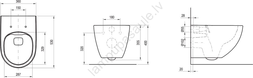• Karājošā konstrukcija nodrošina ērtu grīdas uzkopšanu zem tualetes.